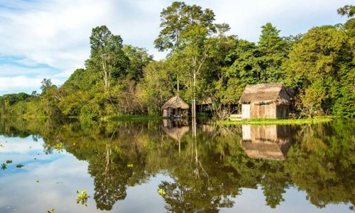 Recepción en el aeropuerto, breve orientación de la ciudad camino al embarcadero de Explorama. Viaje 40km en bote por el Río Amazonas hasta Ceiba Tops, donde las habitaciones con aire acondicionado y baños privados con agua caliente les proporcionarán la comodidad de casa, en medio del Bosque Lluvioso. Caminata por la tarde alrededor de un hermoso bosque primario rodeado de grandes árboles, como el gigante árbol del Ceiba, que dio nombre al albergue. Después de la cena pueden escuchar música local con guitarra y flauta en el Bar "El Tucán", o caminata a ver caimanes y otros animales nocturnos.